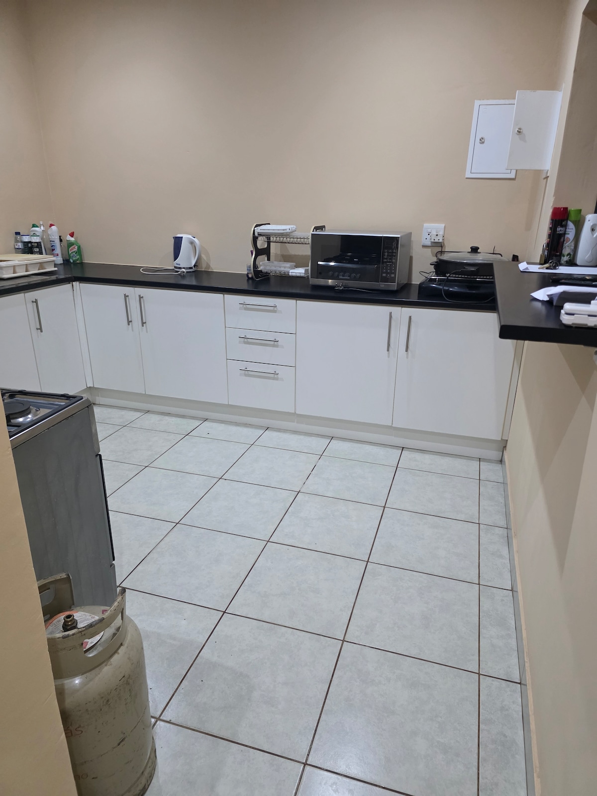 Relax with the whole family at this peaceful place to stay. Swimming pool available 24h a day Peaceful area nearest shops Secured house with Electrofense, guard and Dog.