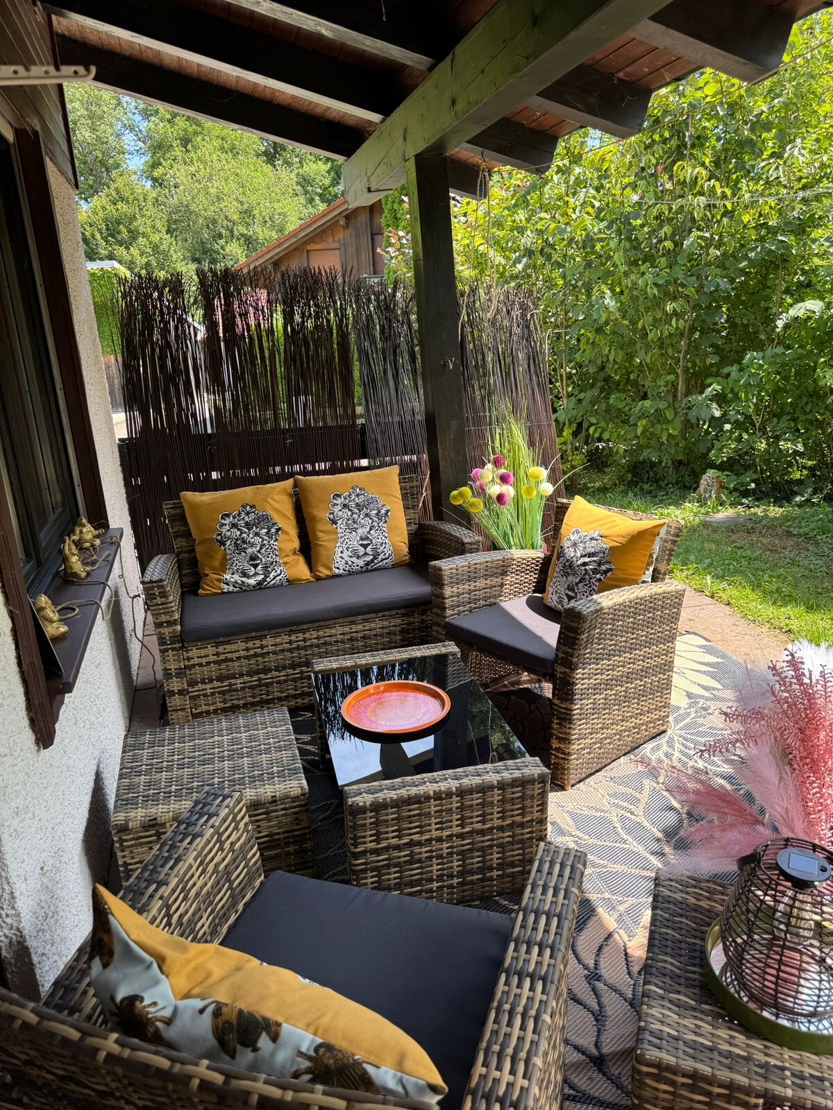 Enjoy your stay in our quiet yet city-close location (public transport 800 meters away). Cafes, supermarkets and restaurants are within walking distance. Quiet, idyllic and surrounded by greenery. The view into the garden is heavenly..... We also appreciate and enjoy it again and again. At the end of the garden you can walk directly into the forest....also ideal for jogging.