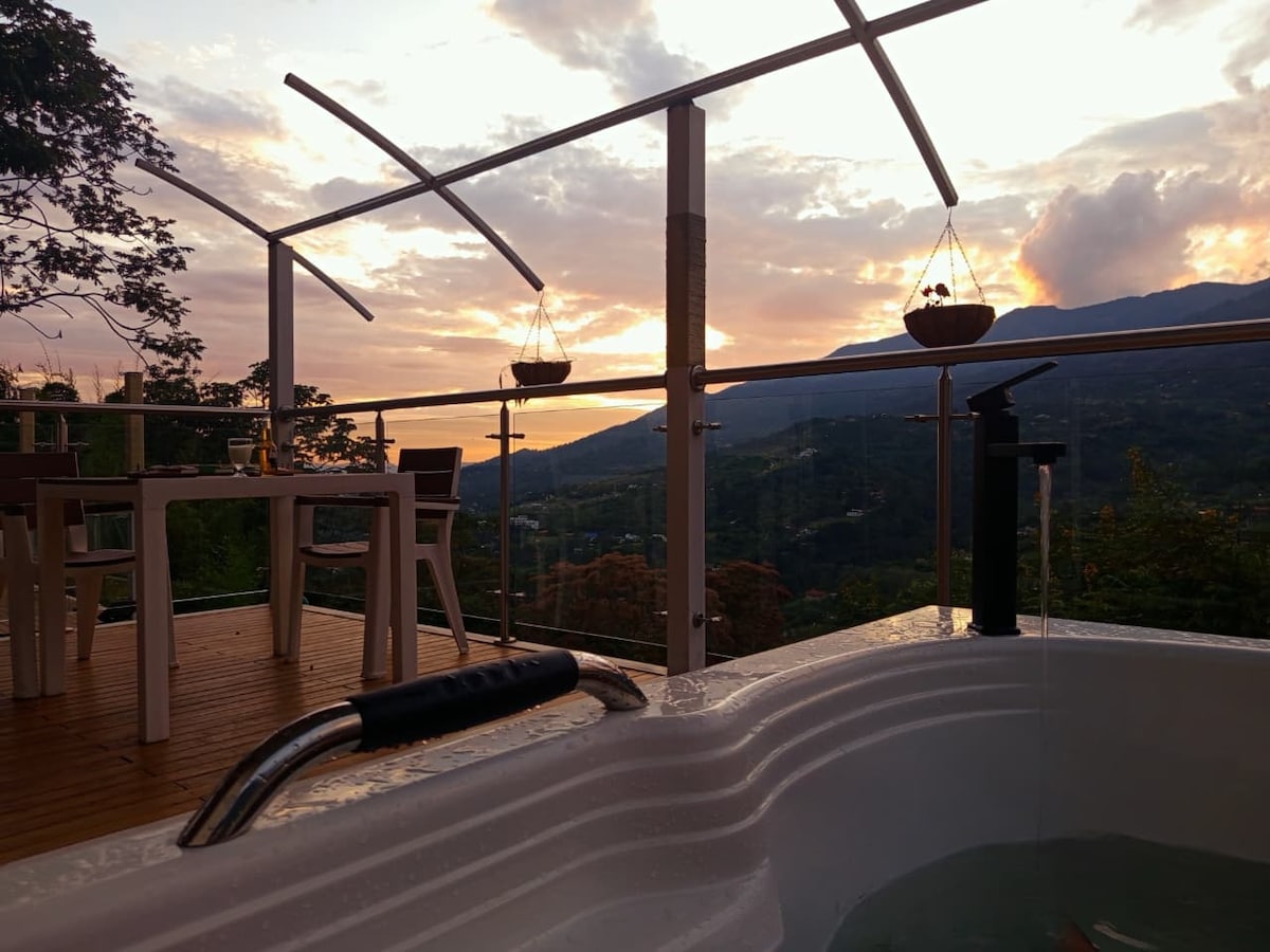 Welcome to “Shambhala El Retiro Ecohotel”, the hidden mythical kingdom, a paradise surrounded by nature. In our TIBETAN cabin you will enjoy: Breakfast is provided Private hot tub lounge chairs Catamaran net Panoramic view Private shower Tabletop games WIFI We are located in Mesitas del Colegio, approximately 1 hour and 15 minutes from Bogota You can enjoy our restaurant where you can have lunch, a romantic dinner or any celebration