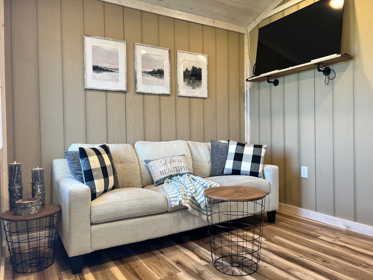 Reconnect with nature at this unforgettable escape. Enjoy various wildlife from treetop views or while strolling this 30 acre creek-side property. Stargaze by campfire or from the inviting hot tub. Enjoy small town charm in antique and craft shops & unique restaurants. Take a scenic drive to a local winery or covered bridge and mill. Each treehouse boasts a king bed, soaking tub, spacious shower, and electric fireplace. Slow down and recharge while surrounded by the peace and quiet of nature.