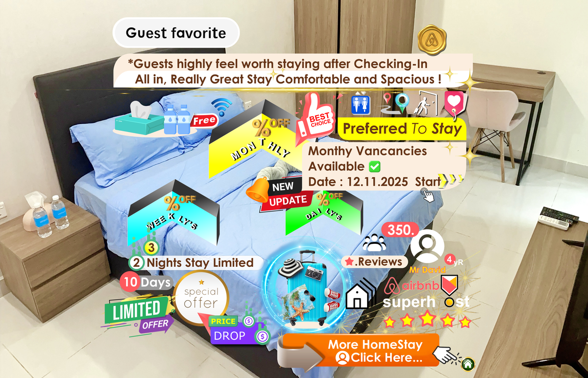 My homestay is located at very strategic location (Boulevard shopping mall), which is nearby airport, bus terminal, shopping malls & major tourist attractions. Therefore, my homestay is suitable for business travelers, couples, and travel with friends & families Guests are able to access swimming pool, gym, sauna, steam bath, shopping & eating places. Please enjoy your trip & stay in my homestay, and at the same time, explore Kuching’s must-go attractions; Sarawak cultural village, etc.