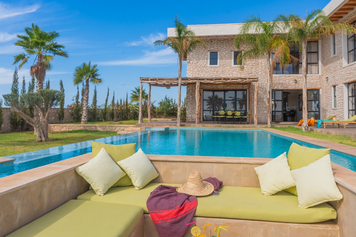 A charming home designed for total serenity, the ultimate full-service retreat for large families and groups of up to 12 guests. Enjoy a truly effortless stay with a dedicated housekeeper and a private cook present daily to care for you. Featuring 5 double rooms, child-friendly amenities, a private Tadelakt pool (heatable on request), and a sun-filled south-facing terrace sheltered from the wind, this peaceful haven offers authentic Moroccan hospitality just 15 minutes from Essaouira.