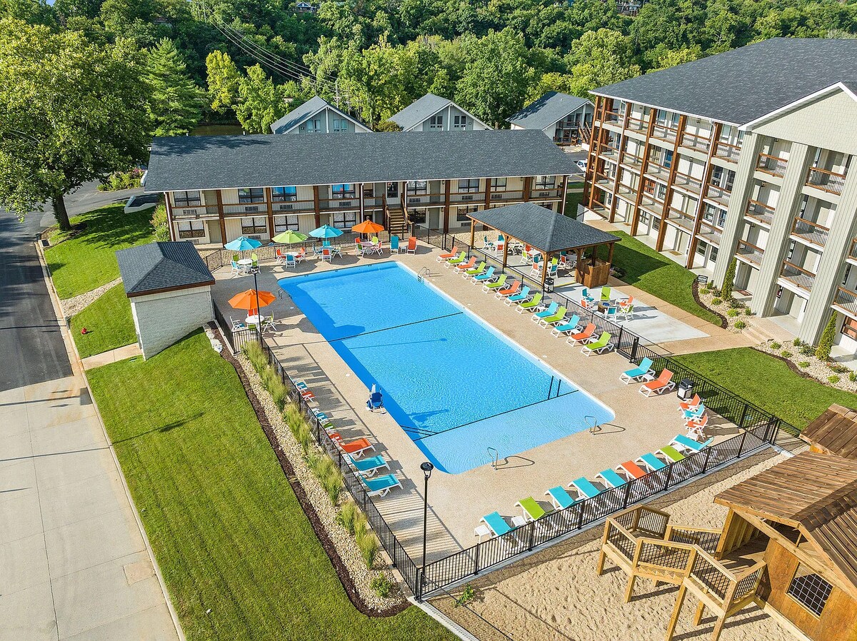 Welcome to Chasing Vineyards, a brand new fully loaded condo with unforgettable views. Favorite Amenities: 🏊♂️ 2 Outdoor Pools and BBQ grills 🕹️ PacMan Arcade ☕️ Coffee bar ⛳️ Putting Green Centrally located to all of Branson's entertainment: -4 miles to Silver Dollar City -7 miles to the Branson Strip -5 miles to Table Rock State Park -6 miles to Dolly Parton's Stampede -3 miles to Moonshine Beach -7 miles to Indian Point Marina (boat rentals available) Your perfect getaway awaits!