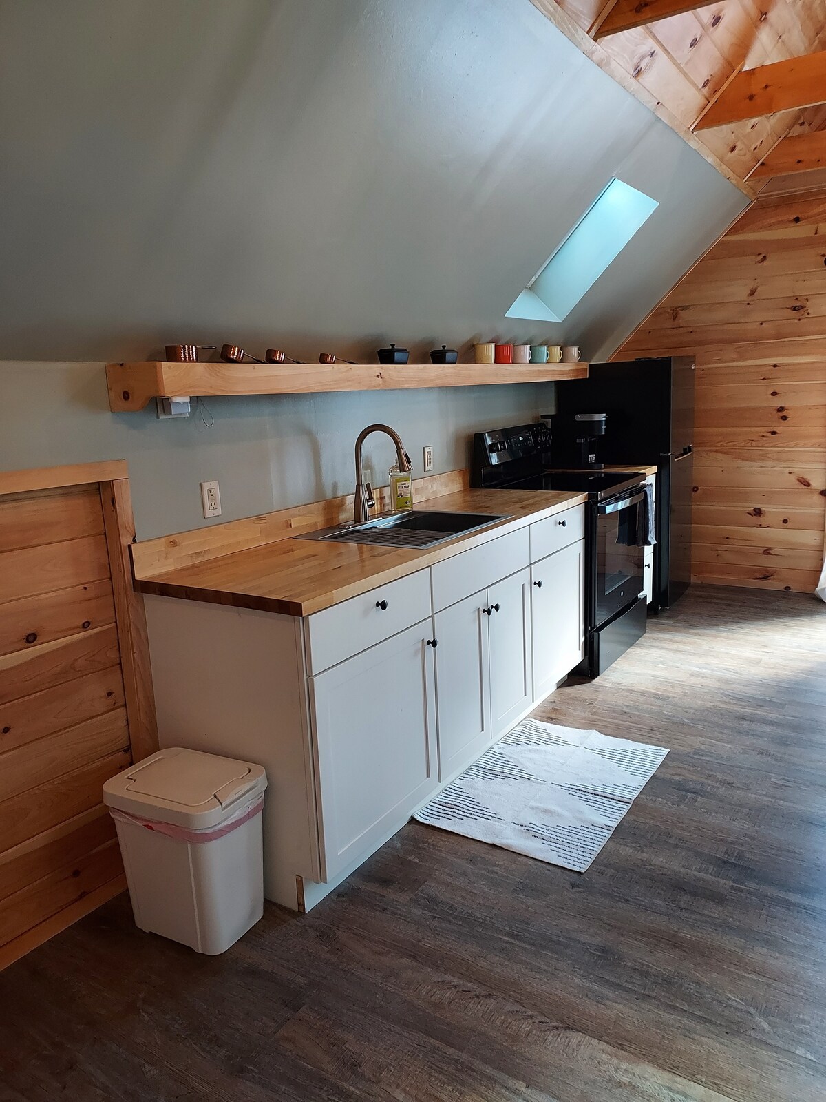 The "Rustic" cottage is furnished with a queen bed, sofa and dining table. There is a small deck with patio furniture, fire ring with wood supplied, and a gas barbecue. It can accommodate 2 people comfortably. Private with parking. Host in separate house. Wi Fi from Xfinity, but please note that it can be patchy. Roku TV WI FI connected to router.