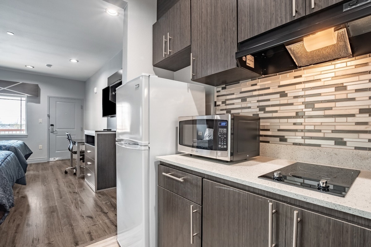 Stay minutes from Texas A&M University at our extended-stay hotel, surrounded by College Station’s dining, shopping, and sports venues. This one-bedroom suite features a separate living area, ideal for relaxation or work. Enjoy the convenience of a full kitchenette, making it easy to prepare meals during longer stays.