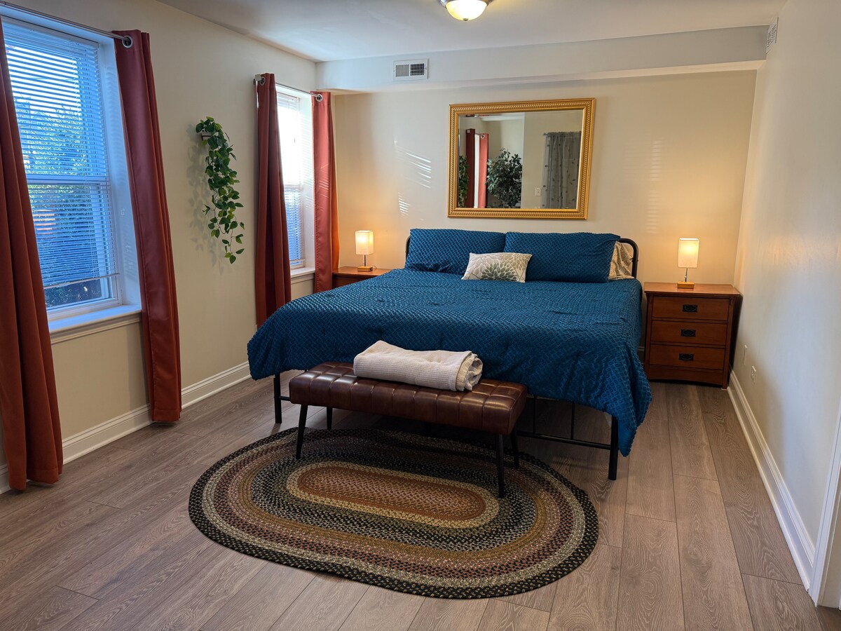 Located by Halsted Orange Line in Bridgeport, our Airbnb has is CENTERED around all the action in the neighborhood; surrounded by Grocery Stores, Fast Food, Drug Stores, Restaurants, and Iconic Parks. With a short commute to the Loop, UIC, Chinatown, we are especially sustainable for longer-term tenants! Enjoy the luxury of firm memory-foam mattresses and pillows and High-speed Internet, Central Heat and A/C and unlimited complimentary coffee for an amazing stay! 1 Queen Bed 1 Full Bed