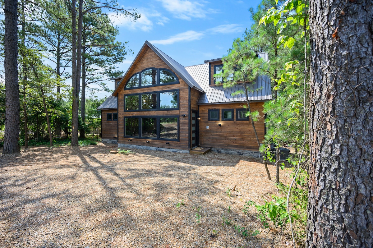 Strawberry Wine in the Pines - a luxurious 4 bedroom cabin with a contemporary flair. This custom build has artisan touches throughout the serene atmosphere. Nestled amongst 100 foot tall pine trees, yet less than 2 miles away from wineries, breweries and restaurants. It's the perfect place to relax and unwind away from the hustle and bustle of everyday city life. We welcome you to our beautiful home and invite you to make precious memories in beautiful Broken Bow that last a lifetime.
