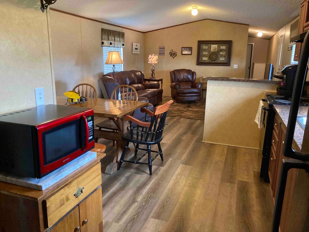 This is a beautiful country get away. Plenty of space to run around, ride horses, or have a fire and roast marshmallows. It is close to a charming small town with cute local shopping. Also very close to the Sulphur River where you can go fossil hunting, hiking, picnicing etc. Driving distance from Bonham State Park. Within a few miles of the Bois D'Arc Lake and we have plenty of room to park your boat or trailer during your stay.