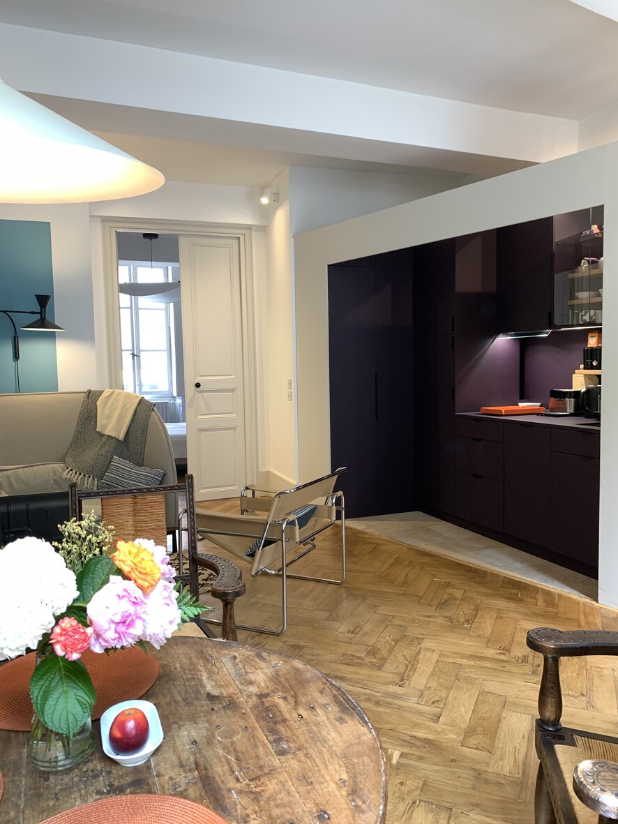 This air-conditioned loft is unique, it is located in the heart of the historic center while being quiet at the bottom of a courtyard close to the Hospices. It has an incredible view of Place Carnot and even the Hospices bell tower. We have completely renovated and decorated it with quality noble materials. Impressive 6 m high cathedral ceiling, very bright. Free parking nearby, restaurants and shops on the square. Fully equipped and 24/7 arrival