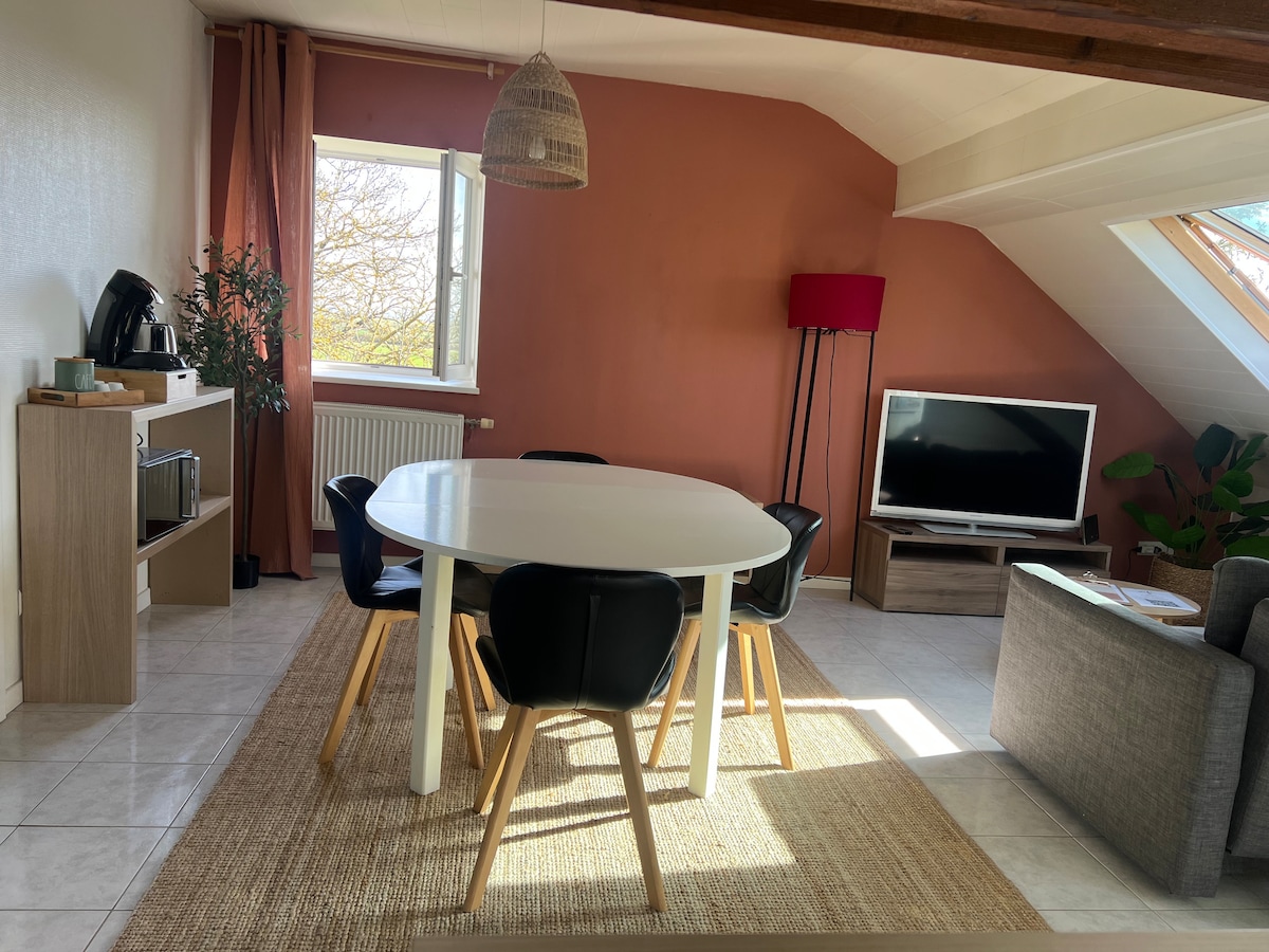At the gates of the Northern Vosges, 300 meters above sea level, in idyllic and hilly landscapes, we rent a semi-detached house composed of a very bright living room, an equipped kitchen, a bathroom, all on a surface of 66 m². The accommodation is located on the 1st floor, a courtyard in front of the house will allow you to relax in the open air and a parking space will be at your disposal. Fast Wi-Fi (fiber) Minimum 2 nights