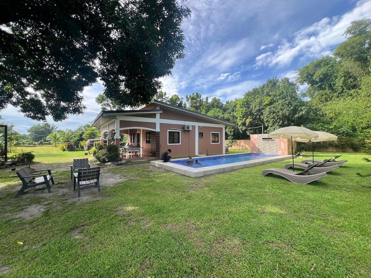 Forget your worries in this spacious and serene space. Lots of farm animals and fresh air. 3 hectares of land with a river that runs along side of it. Only 15 minutes away from the beach. And 15 minutes away from the main town of Iba.