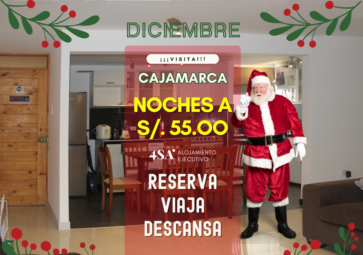 Ideal apartment for your group of friends, who visit Cajamarca and all its attractions. We have indoor parking on premises and 24/7 security. 3 bedrooms and 2 baths Hot water on all keys 60”TV and high speed WiFi. Super stocked kitchen, spacious room and dining room for 6 people. 3 min. from the Plaza de Armas.