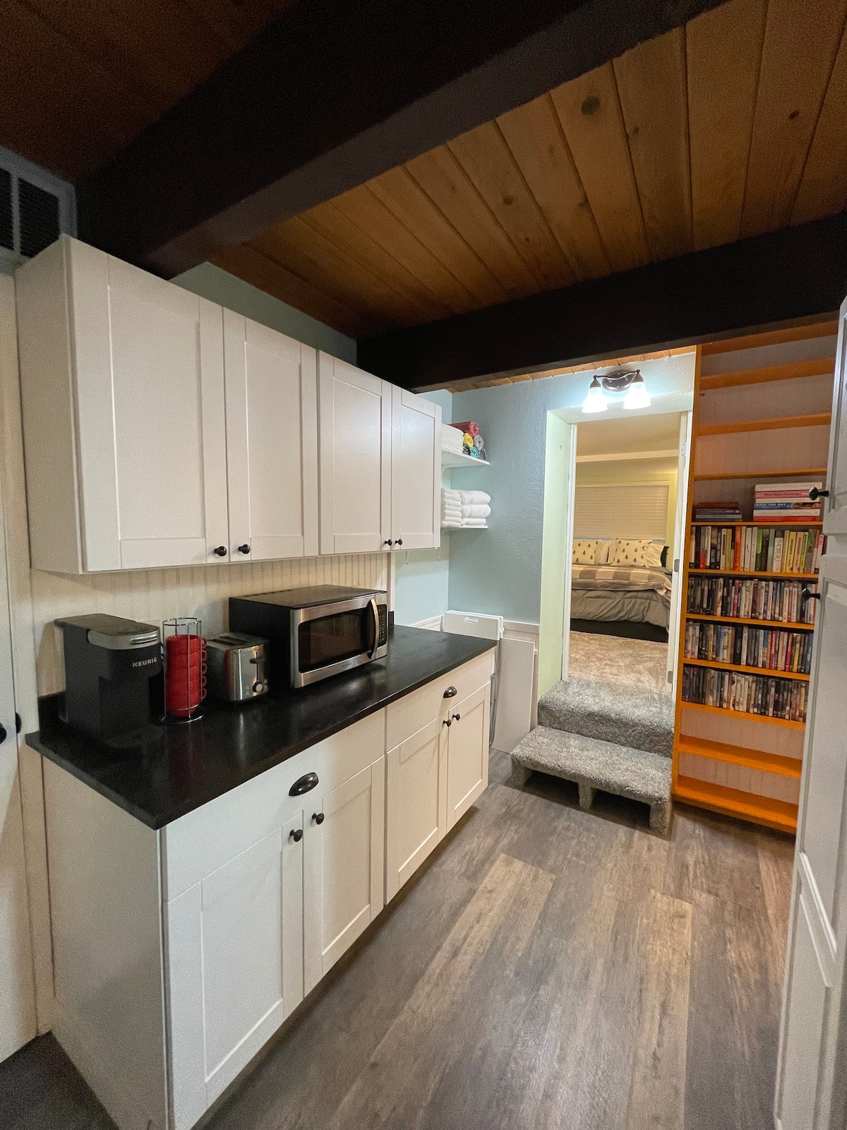 Summer calendar opens in mid-April Four (4) bedroom, two-level cabin, upper/lower separate but connected living spaces. Each level has: entrance, living area, kitchen, bathroom, sleeping areas. Ideal for extended family. Covered patio and deck with lights. Fire pit, propane grill, picnic table. One bedroom outfitted for kids, with play area. Quiet, rural canyon where sound carries - NO PARTIES. Starlink Internet for Smart TVs & WiFi. Owners nearby (offsite).