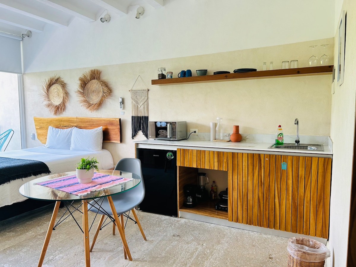 Just a 2.2. Km walk from the Puerto Juárez beach is this private studio located, ideal for getting to know the downtown area of Cancun and the quietest beaches in the area. You'll find just a steps away a local market, restaurants, coffee shops and the bus stop that will take you everywhere. - A solo 10 minutos caminando de la playa Puerto Juárez se encuentra este estudio privado, ideal para conocer la zona centro de Cancún y las playas más tranquilas de la zona.