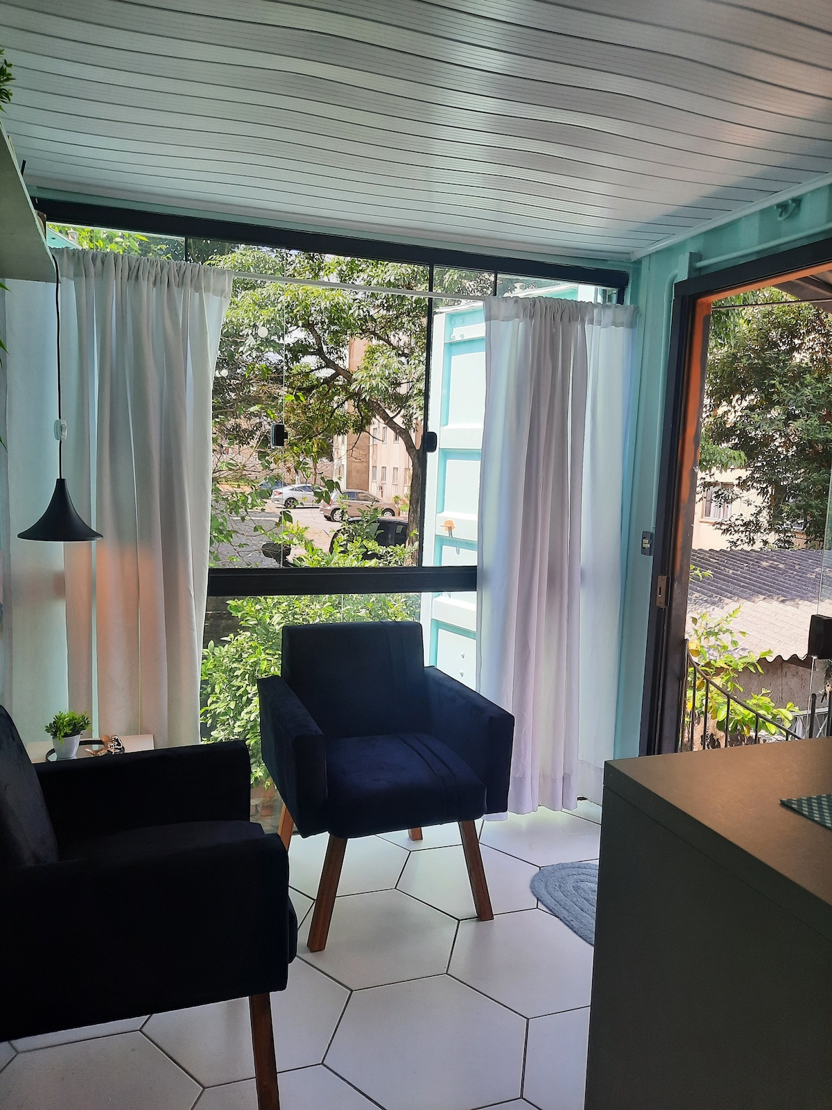 Beautiful High Standard Garden in a privileged location at the highest point of Porto Alegre. Accommodates up to 4 people. We accept small/medium pets. It has a full kitchen, double bed with pillow top, 2 single mattresses, super well-lit bathroom with excellent shower. On the balcony there is a table, 2 chairs, 1 sun lounger, sun umbrella. Parking space included in the price, with the possibility of a second parking space (see fee).