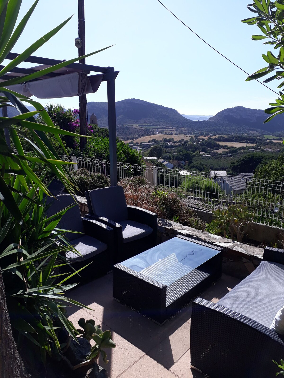 Typical Corsican cocooning accommodation amid olive trees. It has sea views overlooking the village. 5-minute walk to the beach and the city center, close to all shops. This accommodation allows you to have a good time in its large private garden. Great for a stay for a couple without children. This accommodation is composed of a bedroom, an equipped kitchen separated from a large terrace ideal for a couple.