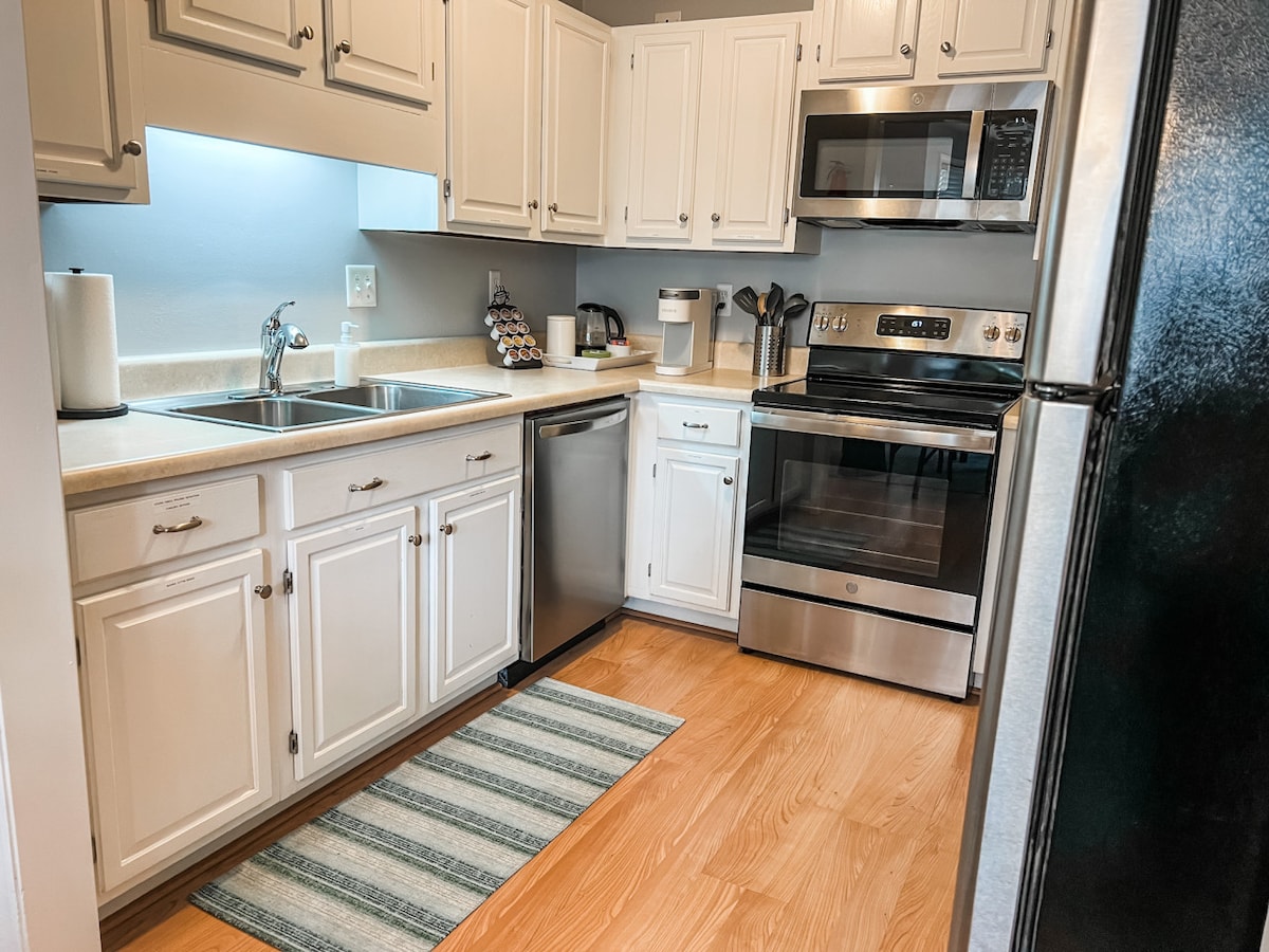 This fully-furnished one-bedroom "garage apartment" is attached to our main home, but you will have your own private entrance! You can expect this to be your home-away-from-home with all the practicalities and necessities taken care of. No stairs are required to the ground-floor entrance except for two little ones in front of the door. Popular for shorter stays, but more than suitable for longer stays, with ample storage, a combo W/D, compact D/W, and dedicated HVAC system. Amazing location!