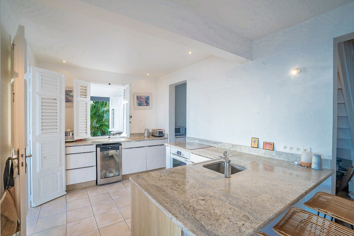 Beautiful view of the Caribbean Sea! Very nice villa, quiet and relaxing, located in a very popular residence, overlooking the large bay. The sunrises are bright and the sunsets are breathtaking. The first sea swim is 4 minutes away by car. The villa is tastefully furnished, with quality materials and fully equipped. Salt pool. Garden. BBQ. Ideal location to travel all over the island. Secure private parking for 2 cars. Supermarket 5 minutes away.