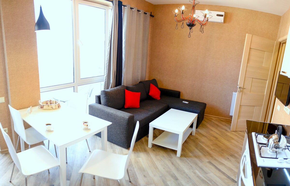 Приветствую всех, кого заинтересовали мои апартаменты. Двухкомнатные апартаменты с отдельной спальней в апарт отеле на берегу Черного моря. Отель расположен на первой линии ,с прямым видом на море из двух имеющихся балконов.Всего в 5 минутах на автомобиле от международного аэропорта Батуми. Месторасположение на Новом бульваре даёт возможность насладиться тишиной,доносящимся шумом волн,подчеркивая преимущество удаленности от многолюдных потоков. В отеле есть охрана, консьерж служба,ресторан