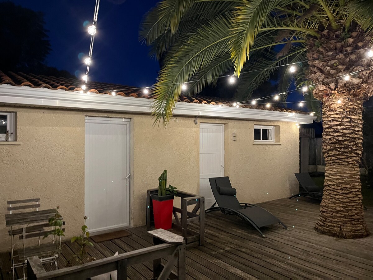 Bordeaux Saint Augustin charming and warm studio for 2 people, completely independent, with individual access and pleasant small private garden, wooded. Ideally located, close to Saint Augustin (50 m), Bel Air (250 m) and Pellegrin Hospital (800 m) clinics. 7 minutes by bus to Bordeaux city center (bus stop 50 m from the studio). 30 minutes from Mérignac Airport by tram (direct line) and 30 minutes from Saint Jean train station (line 9) Parking is free on the street