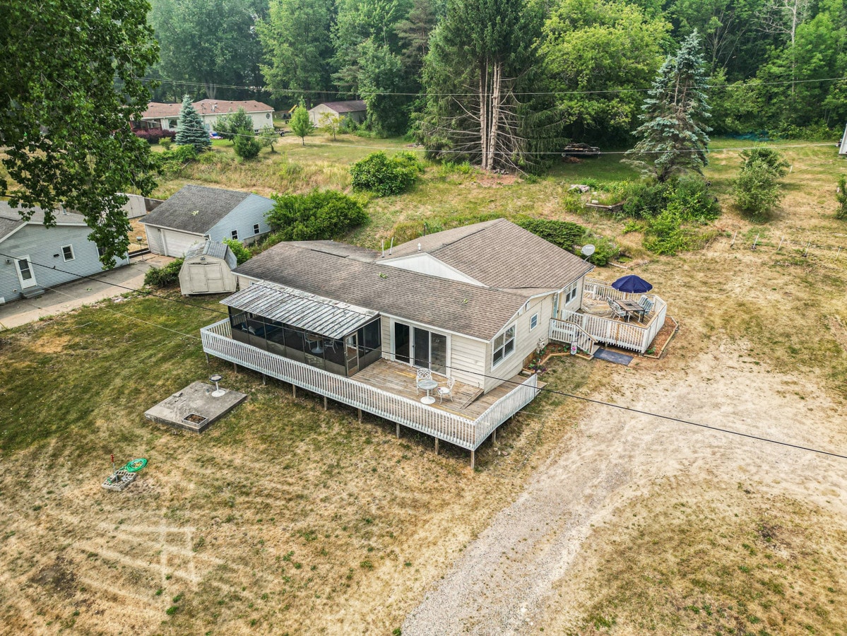 The Loon's Nest is a unique lakefront bungalow with separate bunkhouse. It comes with a 22' pontoon boat, 2 kayaks & dock w/swim platform and attached bench from early May through late October (weather permitting). Situated on 2 large lots that include a sandy beach and expansive access with panoramic views of Lake Wabasis. Plus a backyard vernal pond that's completely surrounded by woodlands and provides extreme privacy.