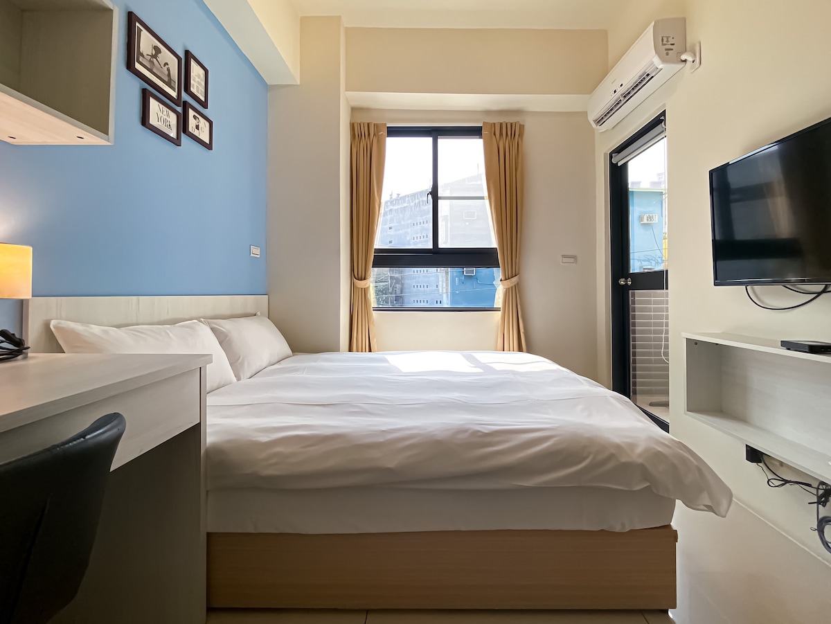 [Private Washing Machine + Balcony] Built-in Netflix · Free Sky Blue · Near Yizhong Street Double Room