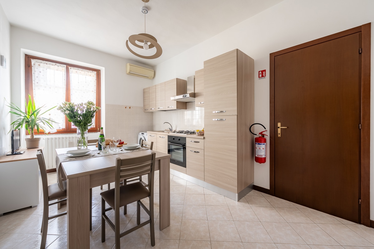 comfortable, quiet apartment, consisting of a living room with a sofa with two single beds, a double bedroom with a 160 x 205 double bed and a single bed, kitchen with fridge, freezer, microwave, Lavazza coffee machine, kettle, toaster. Crib available. Pets allowed. Washing machine and hairdryer. Airport and/or station shuttle available. Next to the building there is a large and convenient free and public parking lot. Supermarket, bars and restaurants.