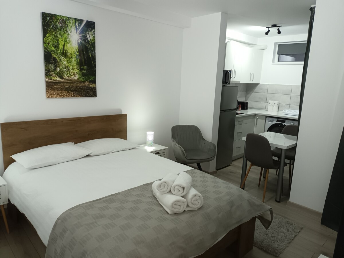 Superb linistit and comfortabil studio apartament oferă cazare cu WiFi gratuit. Acest studio apartament cu 1 dormitor are Smart TV cu ecran plat și canale prin cablu, chicinetă complet utilată, cu frigider și plită, precum și 1 baie cu duș. Acest apartament se află la 80 metri de centrul vechi, 350 de metri de turnul lui Stefan e în acest loc liniștit, situat central.că lucrurile în acest loc liniștit, situat central.