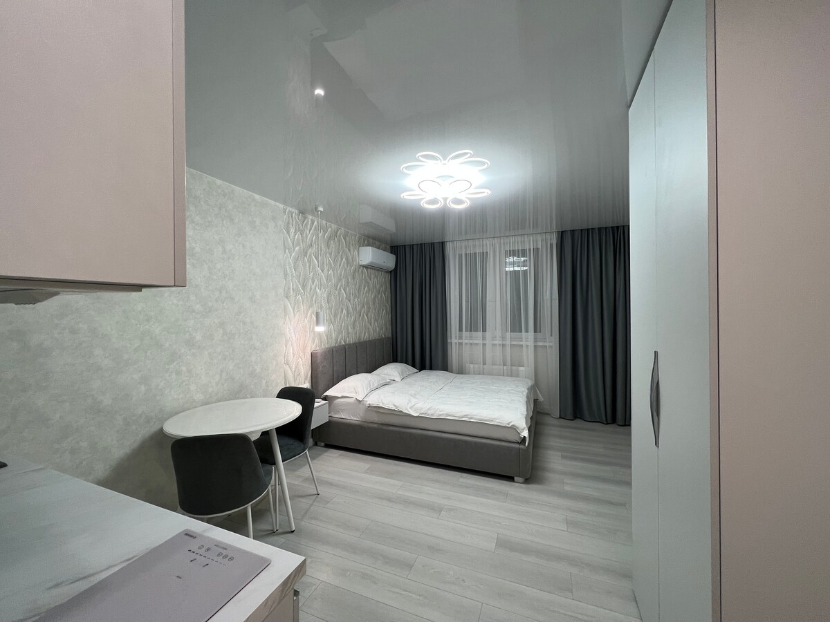 Very cozy studio apartment after renovation! The apartment is located on Sofiivska Borshchahivka in the residential complex "Happy". The territory of the complex is of a closed type under 24/7 security. Free parking is equipped with a video surveillance system. There is a large playground with a fountain in the yard. The apartment has everything you need: a large double bed, air conditioning, washing machine, TV, Wi-Fi, autonomous heating, iron, hairdryer, toiletries.
