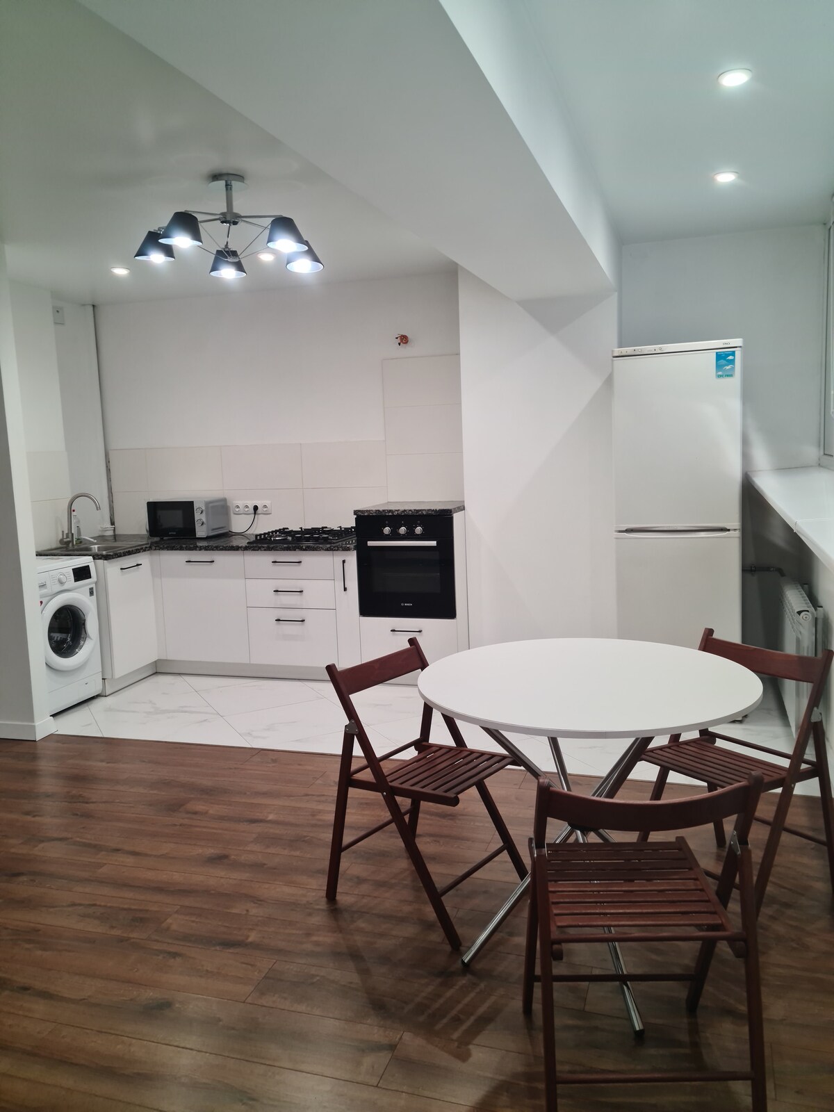 This modern apartment is made with quality materials and thought throughout every detail. Located in a quiet area, yet steps away from Pechersk attractions, cafes and bars, a big supermarket, and close to two large parks with a scenic river view and great for morning jogging.