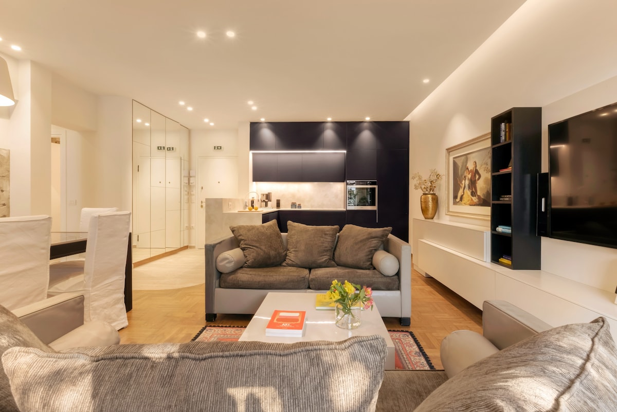 Loft with a modern minimal aesthetic in Gazi in a quiet and safe side street. A quiet 90 sqm oasis in the hot spot of Athens. Only a few steps away from bars, restaurants, cinema, cultural centers and just a short walk to archeological sights! Forbes has named Kerameikos in Athens City, one of the coolest and most beautiful neighbourhoods in the World. 5 min from Gazi square!