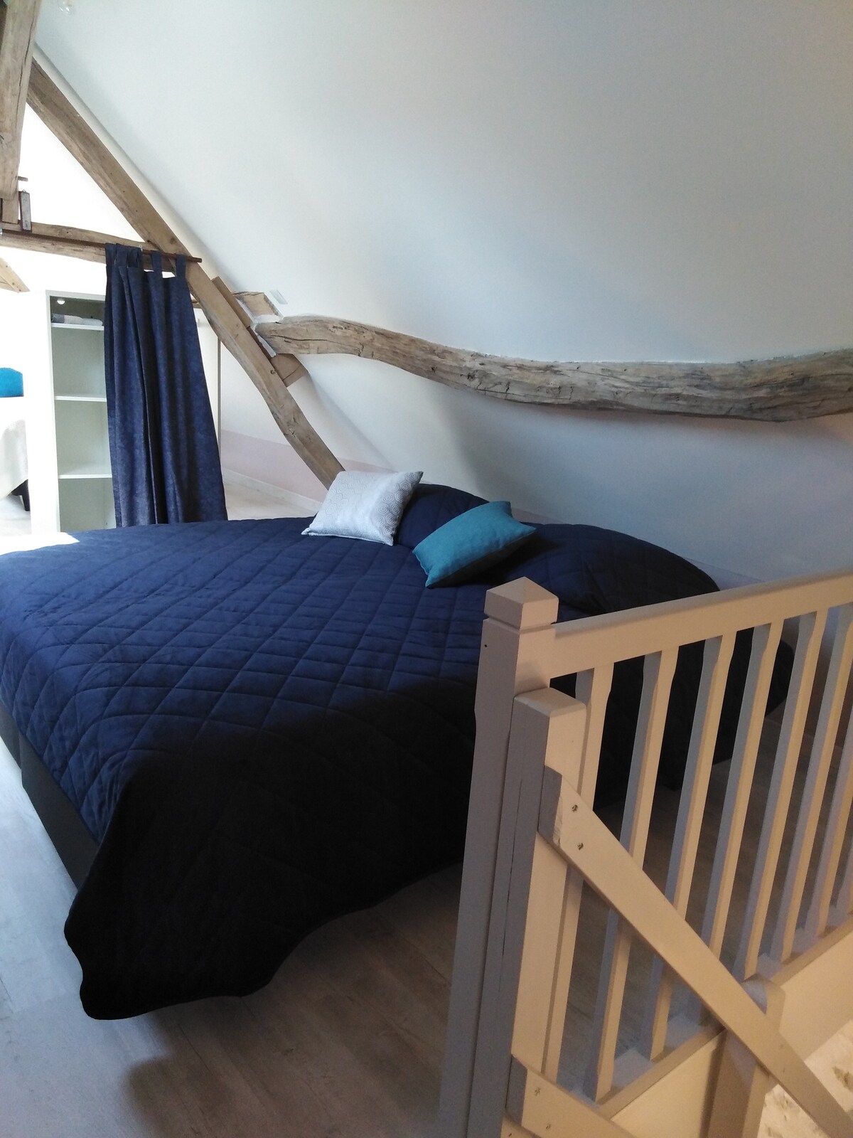 In the heart of a 17th century farm, this cozy accommodation, with captivating charm, has a large private space with a pond where you can find calm, greenery and independence. Very functional and modern, the beautiful living room communicates directly through a large bay window on a south-facing terrace. From there, you will see our ponies, watching you with an envious eye. You will particularly appreciate the landscaping of this accommodation labeled "Route de la rose du Loiret".