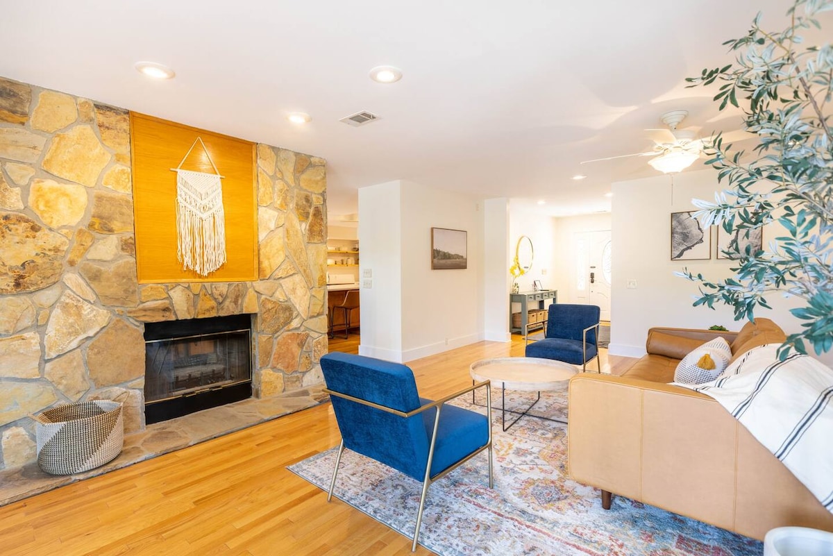 Welcome to our Alpharetta Cozy Cottage! This garden district property is a quick stroll or drive to downtown Alpharetta. Our newly renovated and whimsically decorated cottage provides guests with an unforgettable experience. We are a short drive to Milton, Crabapple, Avalon and DT Roswell too! Inside is a fully stocked kitchen with all new appliances, lots of windows, a wood burning stove, 2 BR, a sleeper sofa in the den, and 2 full BA. Outside, enjoy our pickleball court and large fire pit.