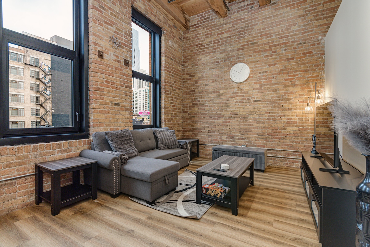 Urban Elegance Meets Prime Location! Welcome to our chic hard loft in the heart of the Chicago Loop. Experience city living at its finest, where industrial charm marries modern luxury. Features: - Authentic loft with polished concrete floors - Soaring high ceilings - Elegantly furnished Location: - Right in Chicago's vibrant Loop district - Walk to Millennium Park, Art Institute of Chicago, Mag Mile, Riverwalk, and more