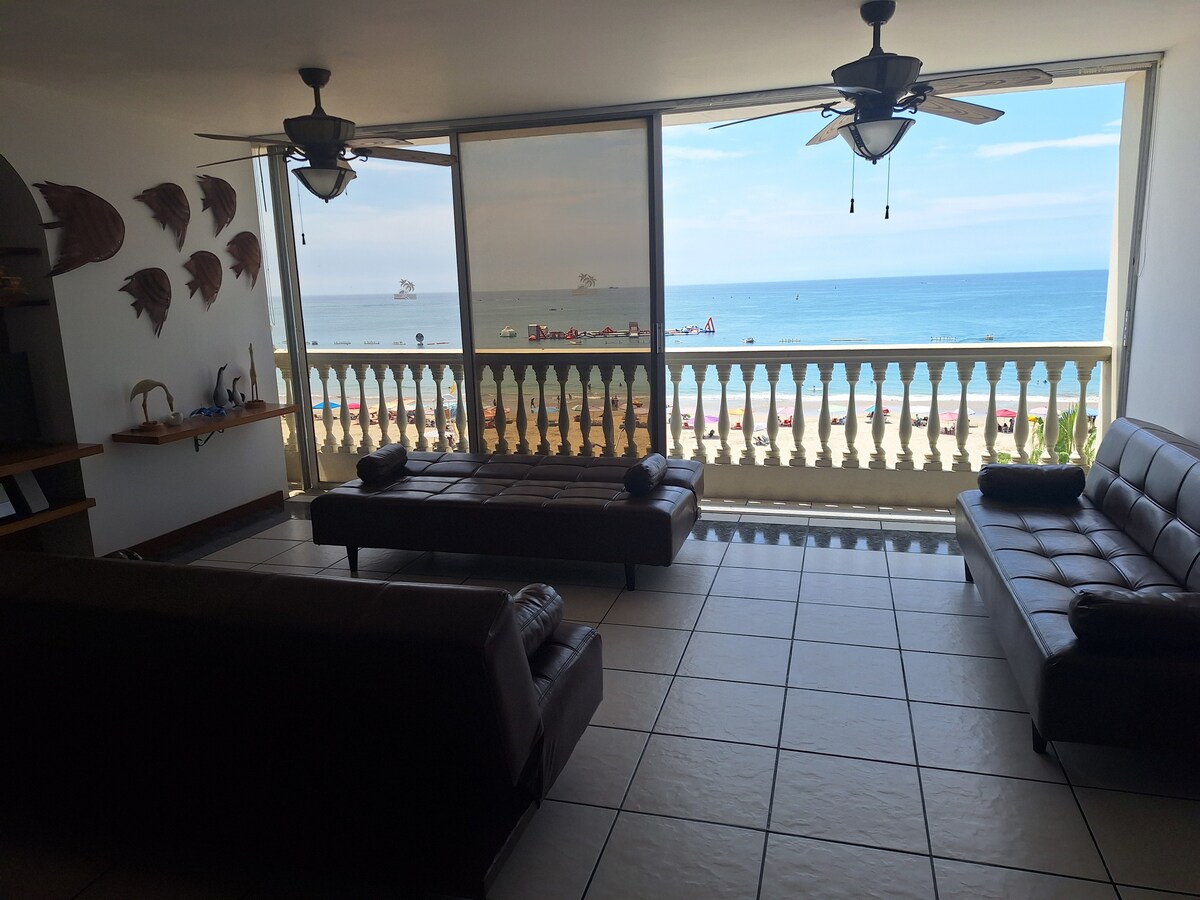 COZY OCEANFRONT APARTMENT! Apartment located on the 5th floor of the “Torre Naútica” condominium, located on the Puerto Lucia esplanade, has 3 bedrooms with split A/C, 2 full bathrooms, hot water, fully equipped and open kitchen, living room with cafeteria area and a large balcony facing the sea where you can enjoy the best sunsets! The only building with direct access to the beach! The photos will be spectacular!!