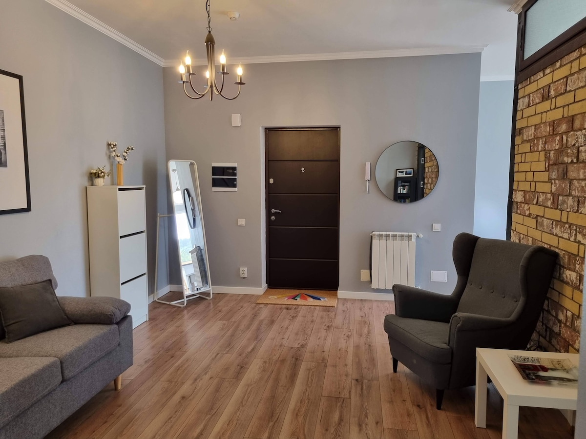 Elegant accommodation, neoclassical style, spacious 98 m2, in a new block, quiet residential area near the park (arranged with places of beach,sports and recreation for children and mature). 5 minutes walk from Shopping Mall ( Banks, Market, Restaurants, McDonald's, Cafes, Cinema, Bowling) and 1.5 km from the city center. Public transportation is easily accessible. Fully equipped kitchen, 2TVsmart, Netflix, WiFi Home cleanliness and customer comfort is our priority