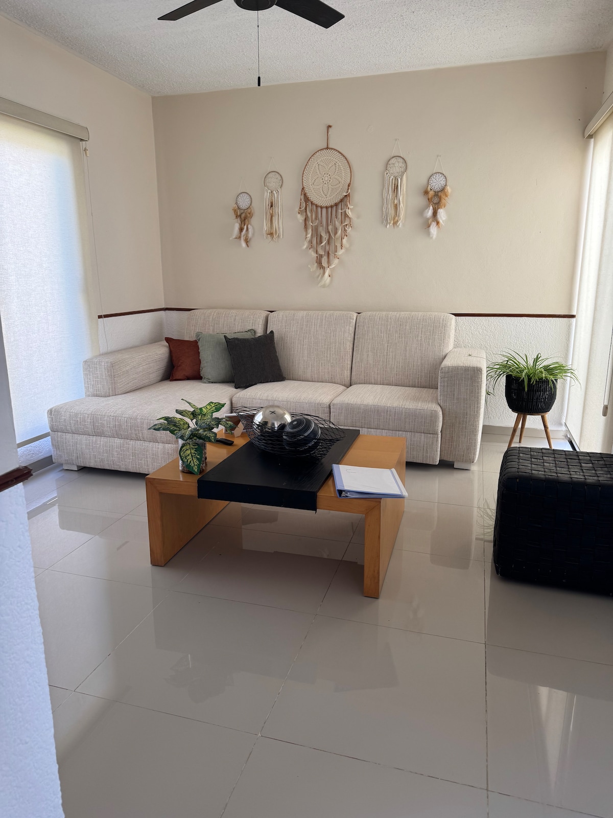 Comfortable, cozy, clean, and elegant two-bedroom apartment, fully air-conditioned; furnished, with access to a swimming pool, gym, multipurpose room, BBQ, and a parking space. In addition, we enjoy a prime location in the northern area of Mérida: - Close to supermarkets, restaurants, bars, and shopping centres. - 3 minutes from the exit for Telchac Puerto. - 5 minutes from the best shopping centres. - 10-minute drive to Puerto Progreso. - 20 minutes from the Historic Centre.
