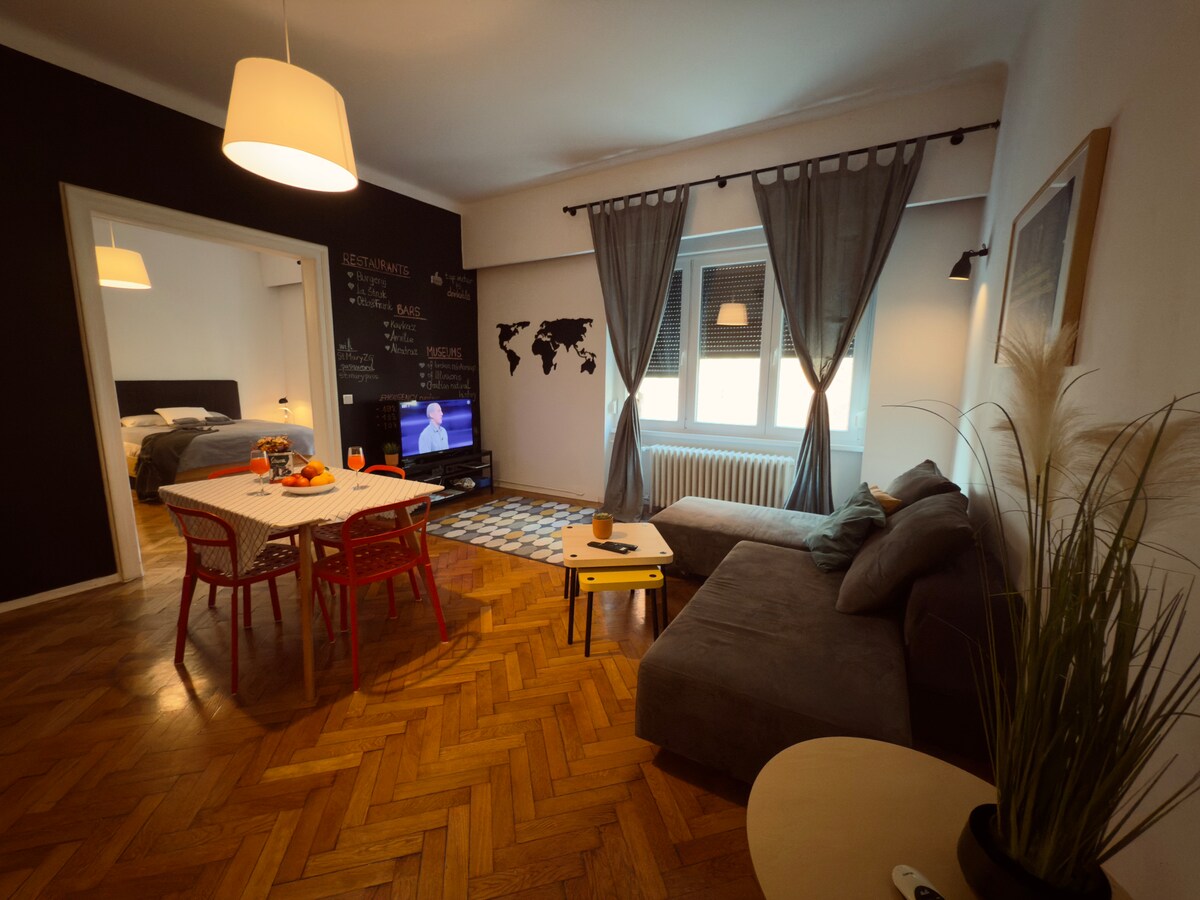 Experience Zagreb's heart from our stylish 2-bedroom apartment on Masarykova ulica. Tastefully decorated, it features a luxurious king-sized bed, two comfortable singles, and a versatile sofa bed for your group's perfect sleep setup. The apartment is located in a pedestrian zone, and the parking is available (and free) in a nearby garage, so your car is safe while you explore the pedestrian zone, historic landmarks, museums, and Zagreb's vibrant culinary scene.