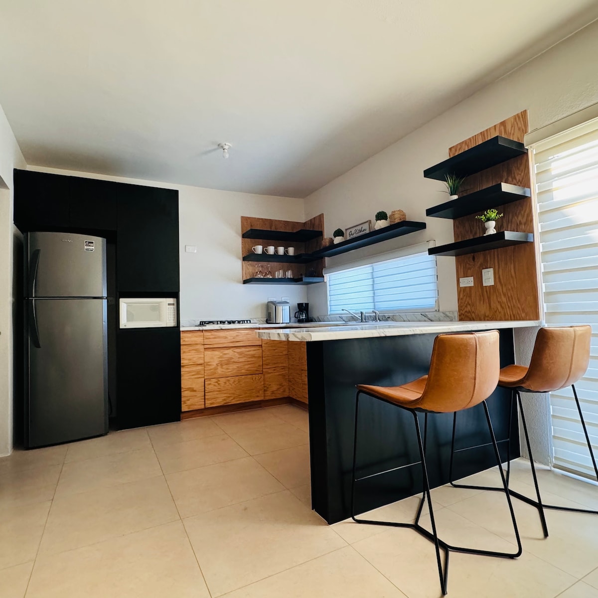 Enjoy a stylish experience in this beautiful place, thinking about the comfort of your home, you will feel right at home. Located a few steps away from restaurants, snacks, shopping malls, IMSS clinic 35 and 10 minutes away from the American Consulate. The kitchen is equipped with the necessary utensils to prepare a delicious lunch, dinner or breakfast, a gas grill, pots, pans and a microwave. The internet is Totalplay fiber optic for home office.