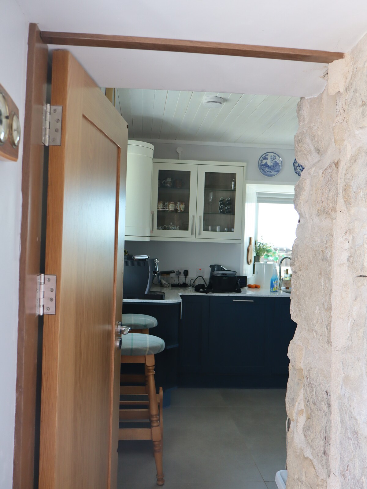 The Barn is a unique old stone barn but modern, with an open plan sitting/kitchen/ eating area with cathedral ceiling and a long narrow window overlooking the Salt Lake to one side, a small window looking down to the sea on the other. There are two bedrooms and a wet room style bathroom (no bathtub) but plenty of hot water and underfloor heating. It is wonderfully quiet, a real retreat for those who just want to escape. Hi speed fibre optic internet. Sorry, not suitable for pets or children