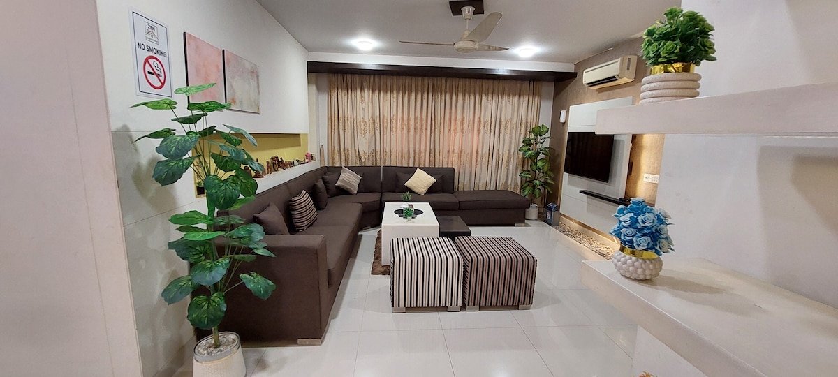 6-bedroom with all attached Bathrooms, luxury home with lounges and a drawing room. Ideally located at close distance to Lucky One Mall, KDA Market, salons, a variety of restaurants and a Masjid. Each room has an ensuite and AC. Enjoy our garden patio, terrace, WiFi, and TV. Free laundry, optional service for a fee. 24/7 security, private guards on request for an extra charge.