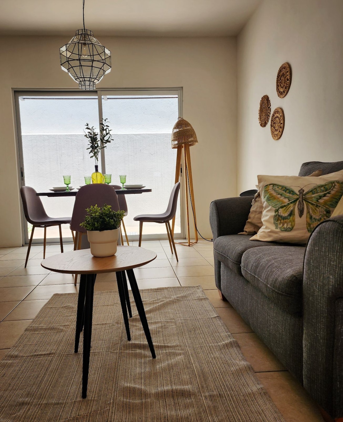 The green apartment is not just a place to sleep, we try to make a place with harmony and good vibes. Visual details. There are two bedrooms, 1 bathroom. A kitchenette with everything you need. Living and dining room for 4 people. A balcony. Lots of light. It's on the second floor. Strategic location 8 min from Superama, Costco, Sams, Home D, Plaza America, Araucarias, 20 de Nov, Lazaro Cardenas. * VAT included