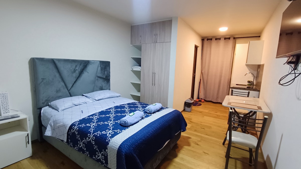 A bright studio in a privileged location, in front of the stadium and steps from Paseo del Prado. Enjoy stunning views and a warm atmosphere, with decor that will make you feel at home. The apartment offers a comfortable and modern infrastructure, equipped with everything you need for a pleasant stay. Ideal for those seeking comfort, style, cleanliness and a central location in Cochabamba. Have the unique experience of staying in a space that combines the best of the city.