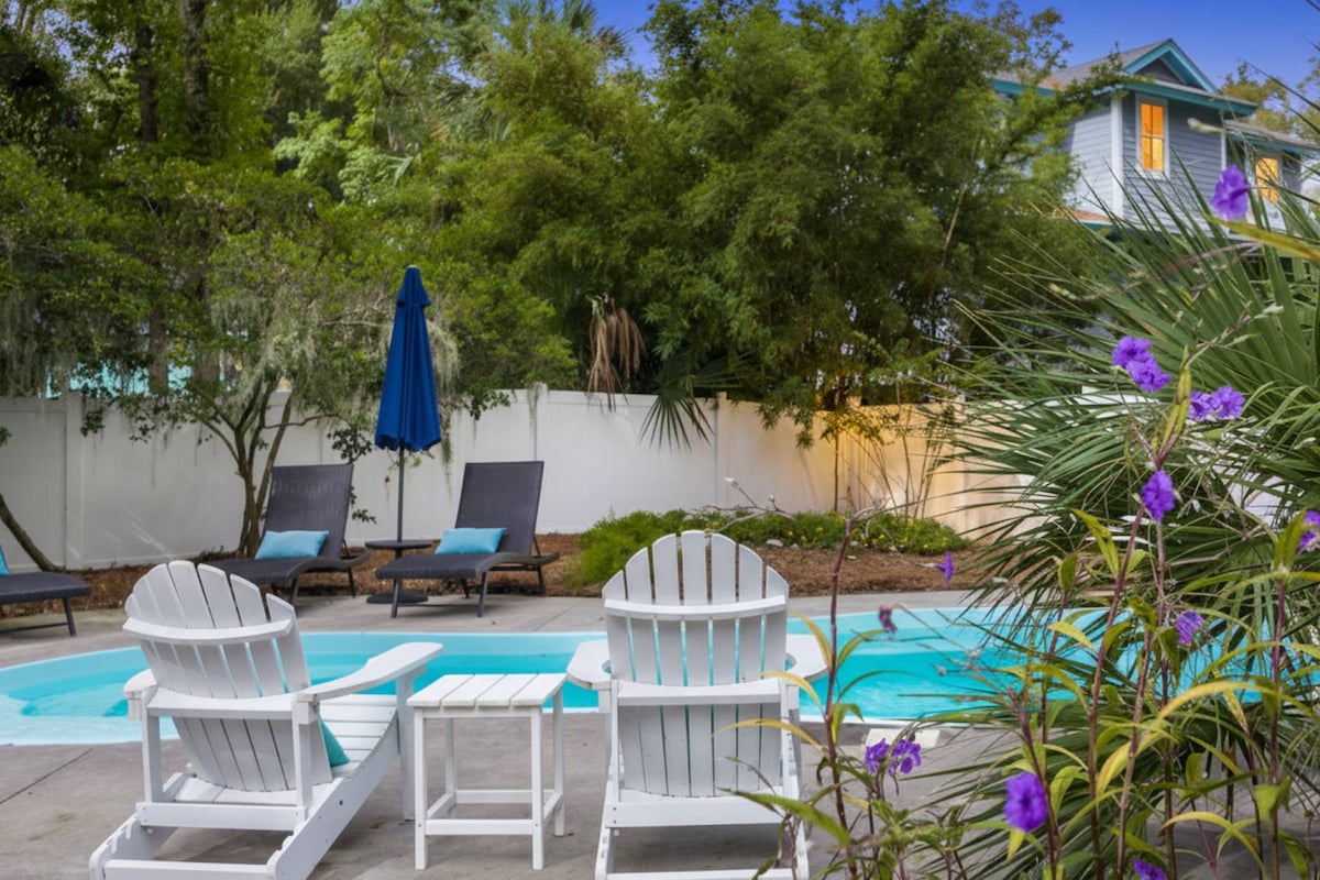 ✨Top 5% of Homes on Airbnb✨ "ISLAND LIFE" is a charming 3/2 Sea Pines Bungalow - a short walk to the beach/next to neighborhood pool! Nestled just inside the Ocean Gate, this retreat stands alone on an oversized wooded lot! Enjoy a private balcony that overlooks a large, natural lagoon that is teeming with wildlife! ● Short Walk or Bike to Beach! ● 3 bedrooms / 2 bath ● Private Home - Big Wooded Lot ● On Wildlife Lagoon ● Next to Pool ● Family Friendly ● 4 SmartTVs ● PS4 ● Beach Gear Provided