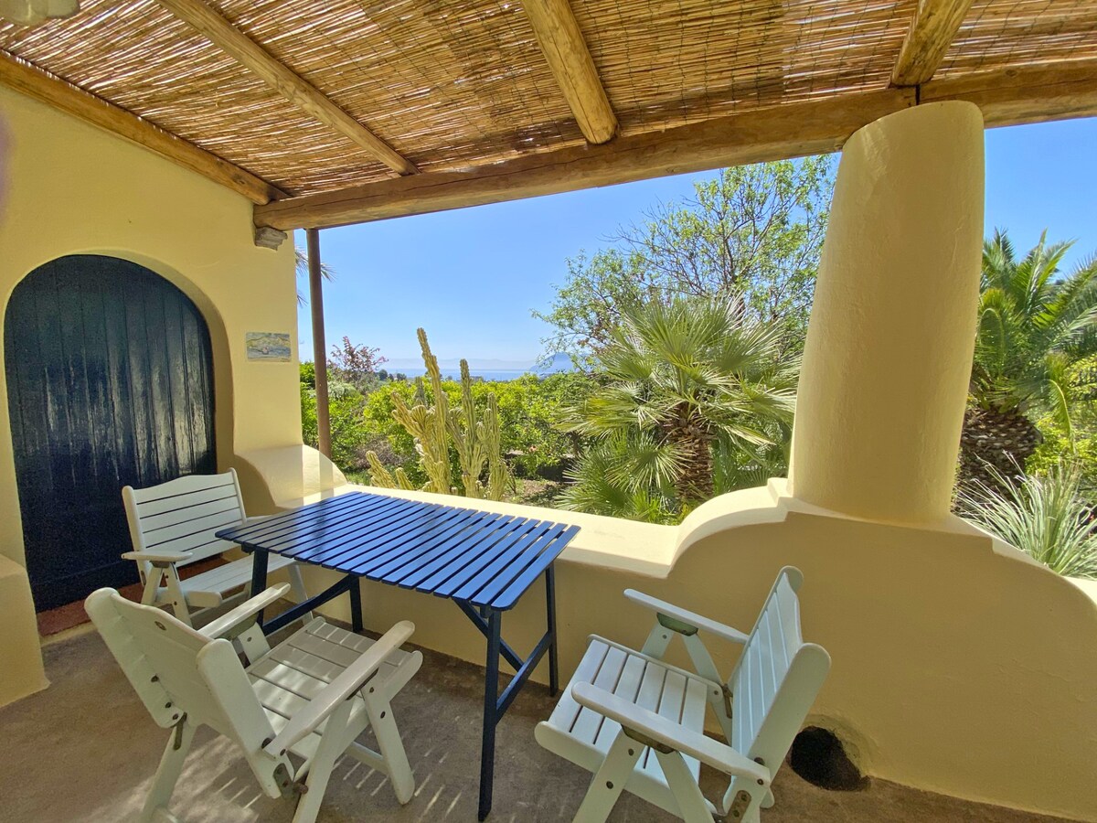tipical aeolian house with sea view and sunset. private swimmingpool. ideal location for those who love nature, for those seeking privacy, walking, trekking, reading a book on an hammock. there is a gas barbeque . WI FI private use of a barrel sauna with a wood oven , typical finnish sauna . wood hot tub