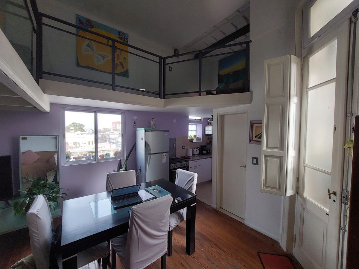 Renovated, spacious and very bright loft in a historic building in La Boca, within the Arts District. It stands out for its unique private terrace with plants, barbecue grill and sun all day long: a true oasis of peace and quiet, hard to find in the neighborhood and in the city. It features fast WiFi, Smart TV, air conditioning (hot/cold) and a fully equipped kitchen. Ideal to experience Buenos Aires like a local, in a quiet and well-connected area. Perfect for couples, friends and families.