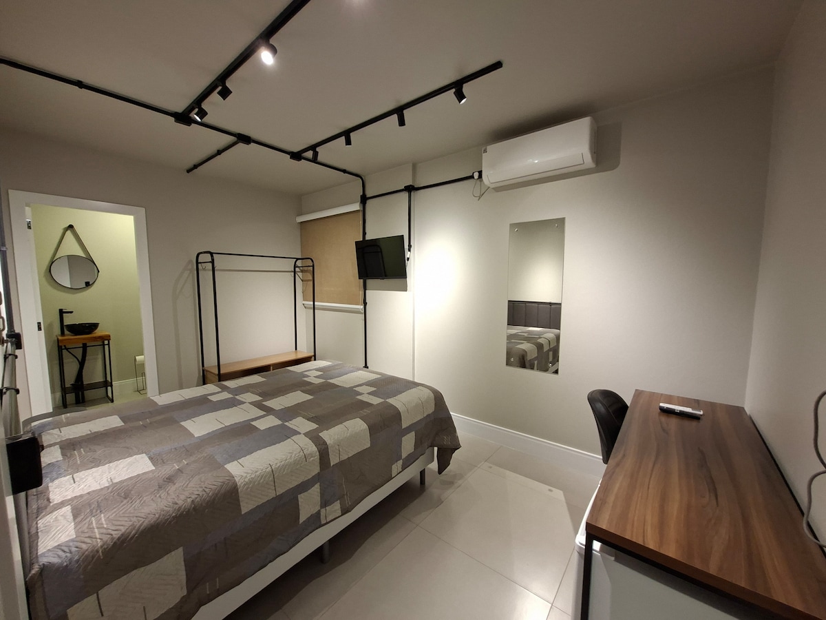 Our apartment is complete and spacious, 80m², located on the floor below the ground floor, 100% renovated, air-conditioned and ventilated, with air-conditioning and windows in all rooms. A welcoming and independent environment, designed to offer a quiet and safe stay in the city center, close to the BRF company, supermarkets, restaurants, shops, beauty salon, among others. Check out our guests' reviews and feel free to choose Studio 264 as your home in Concórdia.