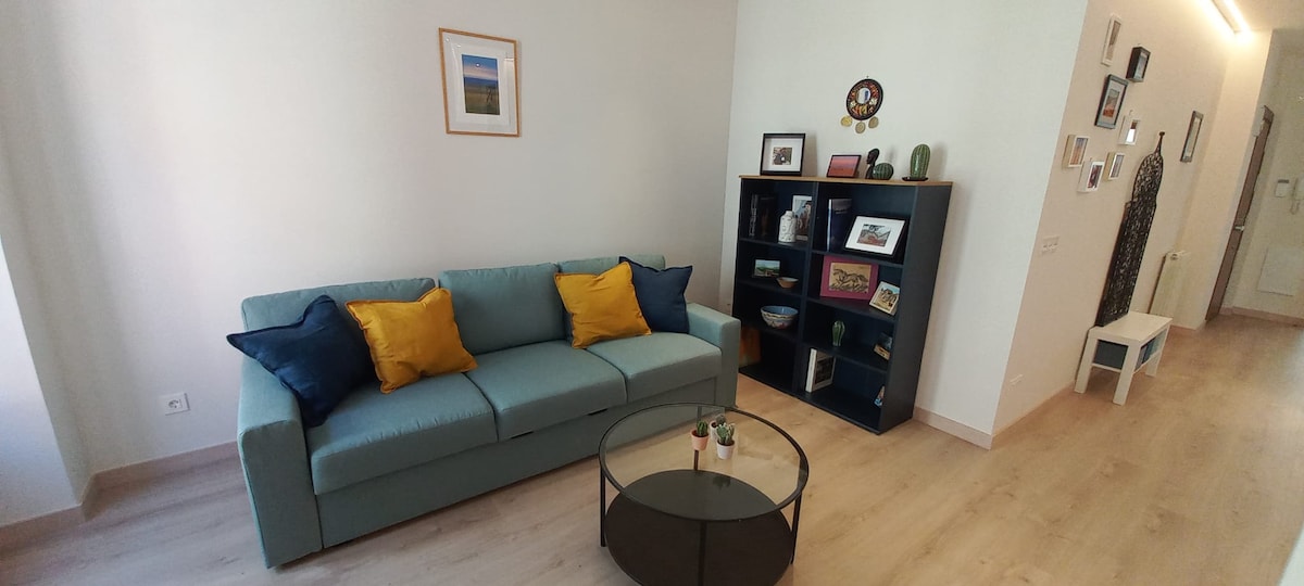 Located in the heart of downtown, just a few steps from the city's main tourist attractions, restaurants. The space has a living room with sofa bed ideal for up to two extra people. The kitchen is fully equipped, and the bathroom is modern and functional. The bedroom is spacious, with a double bed and large wardrobes, ideal for resting after a day of sightseeing in Valladolid. The perfect place for a getaway as a couple, family or with friends