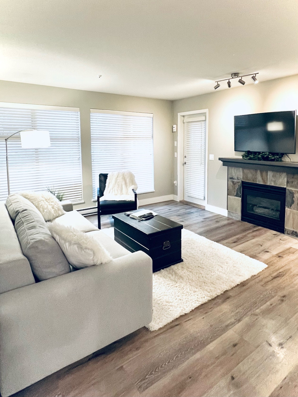 Not cookie cutter! Modern, RENOVATED, bright, open layout. Steps to everything in the Village yet just far enough from the hustle and bustle to ensure good night's rest. 9ft ceilings, large windows, gas fireplace + hardwood floors throughout. Bedroom features a Kingsdown mattress + living new (2024) sofabed (high density) paired w/ high quality duvets/linens. Large patio w/ Weber BBQ. 4k TV in living AND bedroom w/ Cable/Netflix/wifi, FREE secured parking, laundry, 13min walk or bus to lifts.