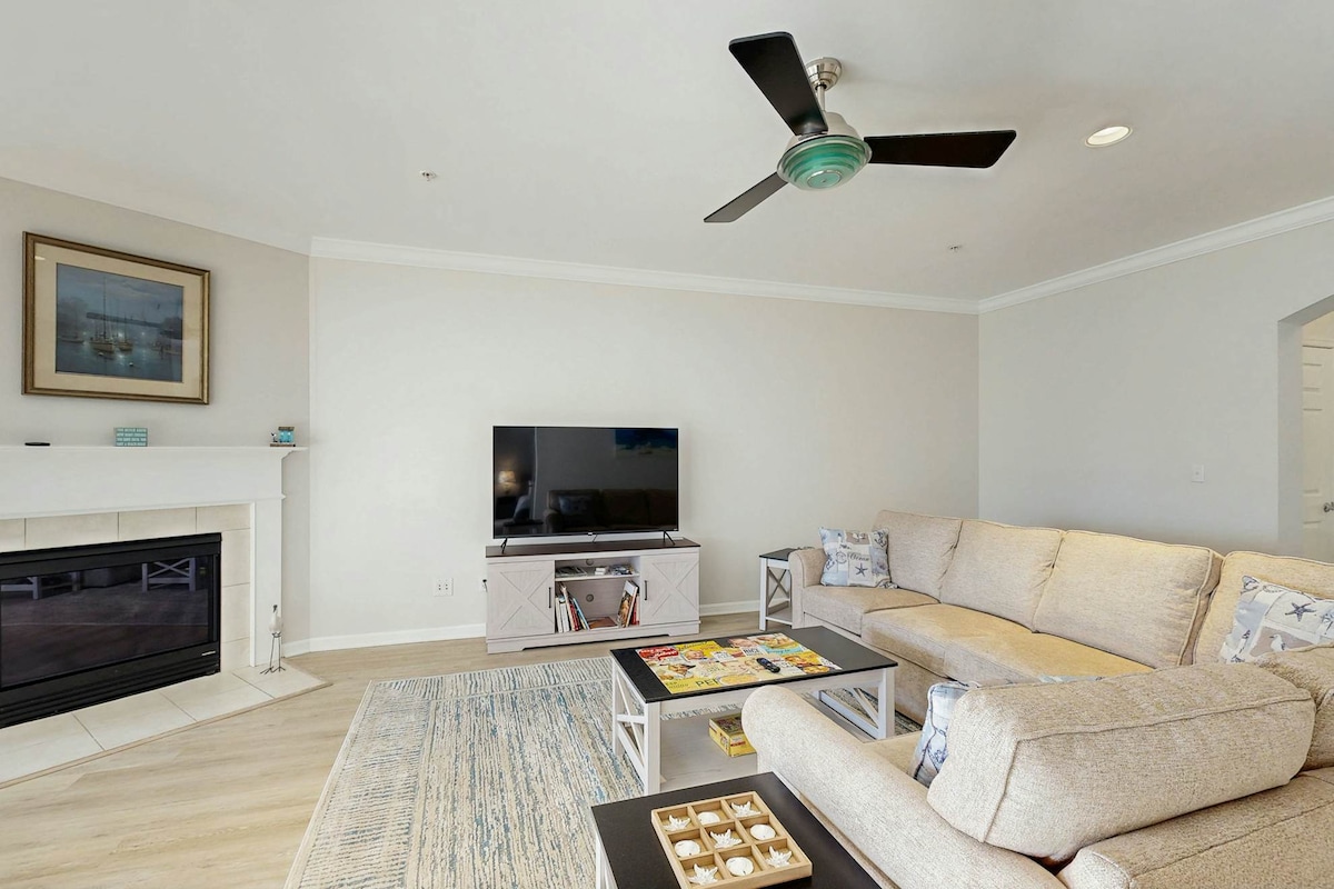 Roomy 3 Bed, 2 Bath Condo in the heart of Bayside. Sleeps up to 8 people. Well-stocked kitchen, comfortable living area and a screened in porch. Dedicated high speed internet & 3 streaming TV's. Elevator access with one reserved, covered parking spot. Additional parking in front of bldg. STEPS from the Sun Ridge Community Pools and Rec. Center- complete with a splash pad, 2 pools, sports courts and more! Passes for use of the pool & rec. facilities are sold at cost for either 3 or 7 day use.